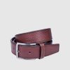 Cinturón de piel en 35 mm, con un grano natural en color marrón, plano y con doble pespunte en los cantos. Hebilla en acabado níquel negro satinado. Fácil sistema de corte para adaptar a la medida