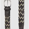 Cinturón trenzado de piel y algodón con hebilla en níquel satín. En el chapón de piel lleva la B del logotipo grabada a fuego.