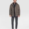 Plumífero de color topo, con capucha desmontable con cuatro bolsillos delanteros. Se cierra mediante cremallera y automáticos.